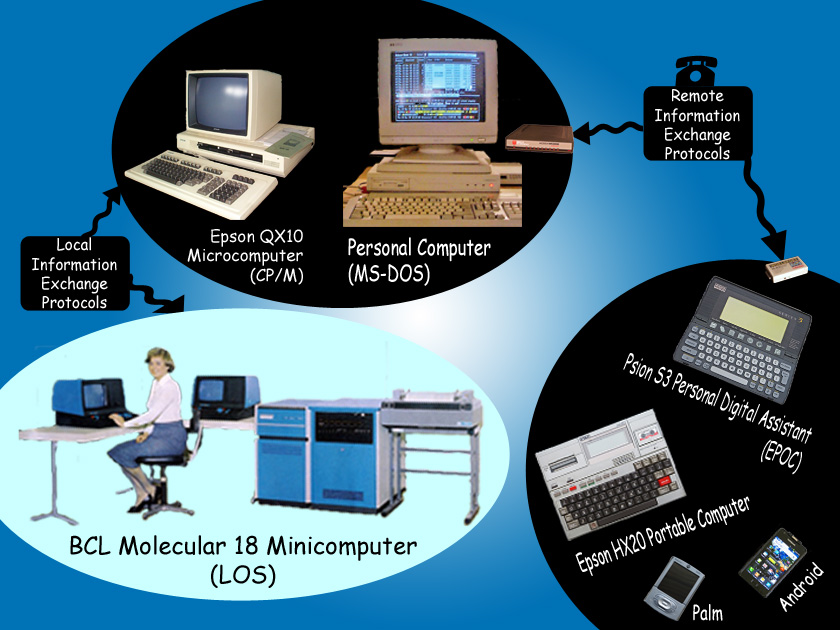 - At the physical level all data exchanges took place via RS232 serial cables (with modems interfacing the